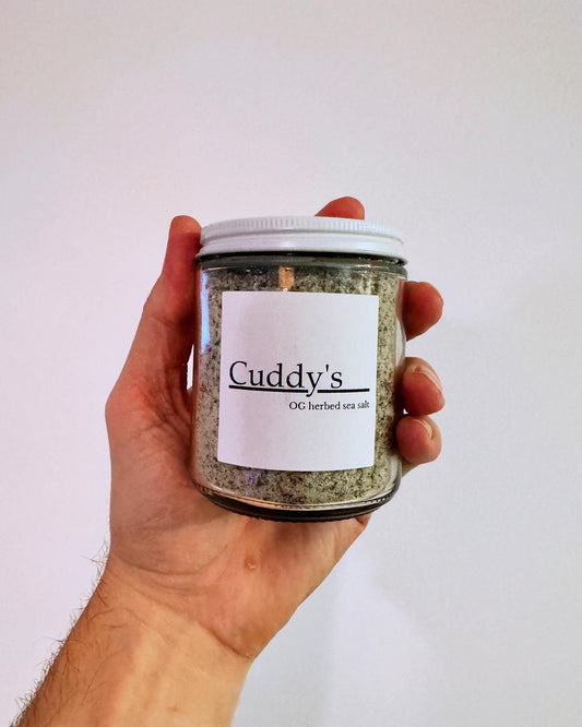 Cuddy Salts began with a passion for food and a love of sharing it. As an avid home cook and food enthusiast, I had been crafting our signature OG Kosher Blend for years. After hosting countless dinner parties, it became a tradition to send friends and family home with containers of the blend—a gesture that led to them affectionately calling it “Cuddy Salts.”